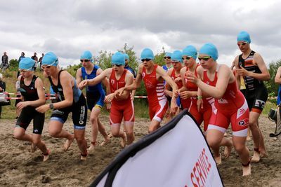 Wechselzone 1 Schwimmen-Rad – am Schwimmstart Mauster Kiessee