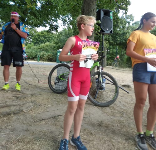 Ich war sehr aufgeregt, das Schwimmen lief gut, obwohl ich sehr viel Wasser geschluckt hatte. Der Wechsel war ganz gut und mir war nicht so übel wie sonst. Das Laufen verlief gut, ich bin an Hannah dran geblieben. Leider habe ich meine große Chance verpasst Hannah zu überholen. Das war aber nicht schlimm, da ich 3. geworden bin.
