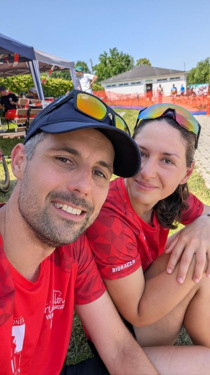 Der Radkurs am Koberbach hat es etwas in sich, macht aber mit immer wieder gut rollenden Passagen echt Spaß. Durch den separaten Start wusste ich nicht genau, wo ich mich im Rennen befinde, konnte aber ein-zwei vor mir gestartete rote Einteiler einsammeln. Vor Radschluss an der Wende sah ich Fabio kurz vor mir und hatte damit ein Ziel fürs Laufen.