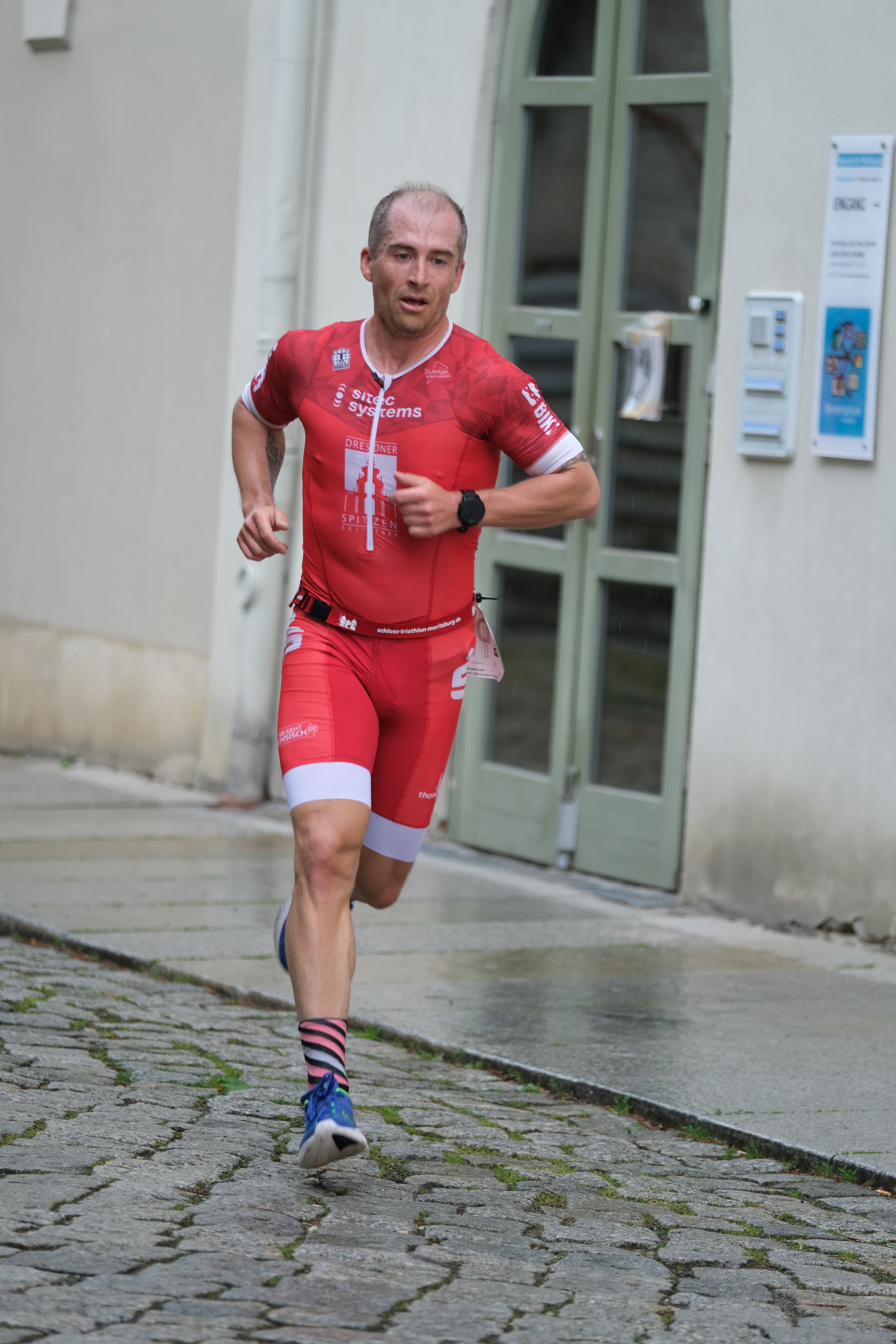Wieder in der Wechselzone eingetroffen, zügig die Schuhe gewechselt und aufs Rad geschwungen. Der Rad Part über 27km über nassen Pflastersteinen verlief für alle reibungslos. Das Gelände war sehr anspruchsvoll und was für unsere Bergfahrer.