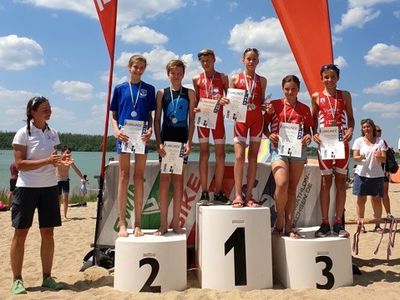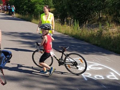 Nach dem Plan unseres Trainers Jörg, der nicht dabei sein konnte, fuhren wir als erstes 5 Kilometer der Radstrecke ab, checkten unsere Räder ein und absolvierten ein kurzes Lauf-ABC. Und dann ging es auch schon los mit dem ersten Start für unsere Jüngsten aus dem Team.