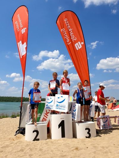 Endlich war es soweit. Die Siegerehrung begann und wir durften uns über viele Pokale, Medaillen und gute Platzierungen freuen. Nach der Siegerehrung war nochmal eine Abkühlung im Wasser angesagt.