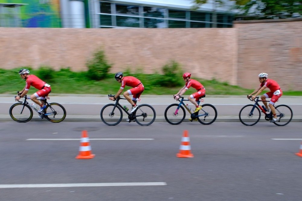 Als 4. Wettkampf in der Regionalliga stand der Teamwettkampf in Halle auf dem Programm. Das Format erlaubt den vier Athleten eines Teams gemeinsam den Wettkampf zu bestreiten und sich innerhalb des Teams zu unterstützten. Wenn ein Athlet eine größere Lücke zu seinem Team hat, gilt er oder sie als abgehängt und darf nicht wieder zum Team aufschließen. Unser Motto für den Tag war also: So lange wie möglich zusammenzubleiben und zusammen zu arbeiten.