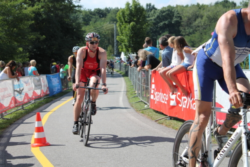 Der Wettkampf selbst ging bei mir dieses Mal in allen Disziplinen recht rund und kurzweilig über die Bühne. Der Motor scheint langsam zum Diesel transformiert. Schwimmen noch wie gewohnt solide schwach, alle Züge waren bereits abgefahren. Auf dem Rad hieß es nun, soweit wie möglich nach vorn zu kommen, was mir auch Dank Grahlo's ohrenbetäubender Anfeuerungsschreie während des Überholvorgangs gelang. Auf der letzten Radrunde fuhr ich auf einen unbekannten Berliner auf. Zusammen mit ihm ließ sich die Lücke zur Gruppe Koburger/Flachowsky beinahe noch schließen. Als Trio mit Flachy ging es auf Position 6 auf die Laufstrecke. Zwei Laufrunden um den Dreiweibener See standen nun noch auf dem Programm. Hinzu kam je eine kurze Wendepunkt-Abzweigstrecke, scherzhaft auch als Energy-Lab bezeichnet, auf der man Abstände, Tankfüllung, Kampfeswille und weitere wichtige Parameter der unmittelbaren Konkurrenten analysieren konnte. Der Berliner lief stark an, löste aber plötzlich den Parkschein und wurde nicht mehr gesehen. Flachy entfernte sich langstrecklertypisch, vermutlich mit auf die Sekunde konstanten Kilometersplits stetig schneller nach vorn, nach hinten schien Luft zu sein. Allerdings nicht ausreichend: Trotz eines Positionsgewinns eingangs Runde 2 kam 500m vor dem Ziel noch ein Athlet vorbei, den ich gar nicht auf dem Schrim hatte und zunächst für einen Staffelläufer hielt.