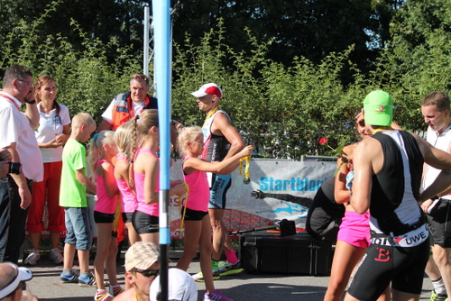 Völlig zufrieden trudelte ich auf Platz 5 ins Ziel, kurz danach zeigte Shootingstar Marco mit einem saustarken Mitteldistanz-Debut, dass man ihn in Zukunft immer auf der Rechnung haben sollte. Alle anderen TV'ler bewiesen ebenso enormen Kampfgeist und trafen nach und nach im Ziel zur üblichen Wettkampfauswertung und Getränkeaufnahme ein. Jule hatte in Roth bereits gezeigt, dass sie auch locker die doppelte Distanz schafft, so war ihr gestattet, den Körper schon vorfristig zu entlasten.