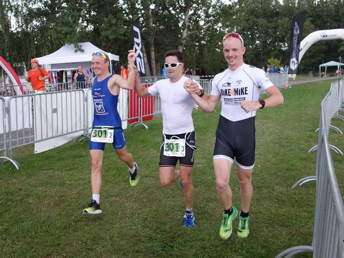 Der kurze Lauf schmerzte vor allem Martin, dessen langstreckengeschundene Beine sich mit einem 4km-adäquaten Tempo so noch gar nicht wieder anfreunden wollten. Ins Ziel wurde dennoch glücklich zu dritt eingelaufen und die Eile belohnt, weil der Gewitterregen schon wenige Sekunden später einsetzte. Bedauerlich für all die Staffeln, die nicht nur läuferisch sondern zum Teil noch radelnd unterwegs waren.