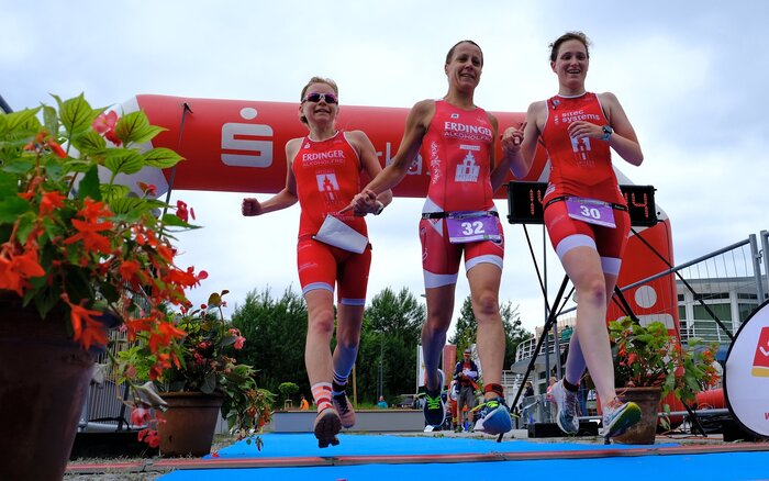 Die Dresdner Athletinnen erreichen glücklich das Ziel.