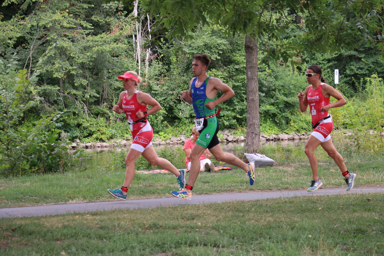 Bei den Frauen zeigt Stine Henning ihre starke Form und gewann souverän. Nachdem sie beim Schwimmen und Radfahren den Kontakt zur Spitze hielt, lief sie auf den abschließenden 5km der Konkurrenz davon. Hut ab! Katja und Astrid liefern sich dahinter einen ordentlichen Kampf um die Plätze 11 und 12. Am Ende des Tages schaffen es damit auch die Frauen mit Platz 3 aufs Podest.