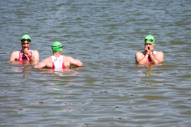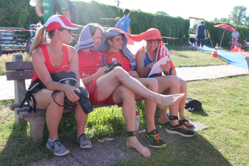 Gegen 15 Uhr ging es dann zum Start bei sommerlichen 30 Grad ohne Bewölkung. Uns stand also eine Hitzeschlacht bevor. Zuerst starteten die Quadratlethen, danach wir in einer reinen Ligastartwelle und danach die Jedermänner- und frauen.