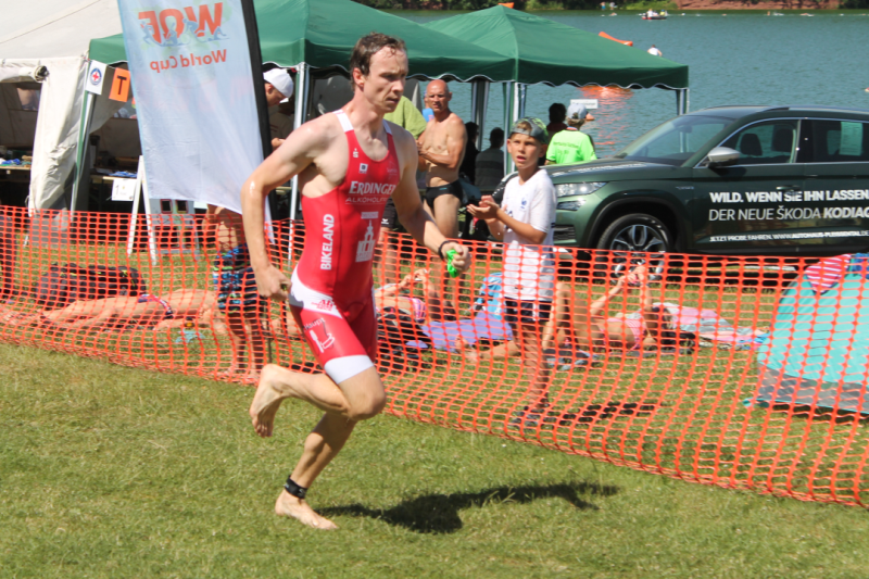 Vom Schwimmen ging es nach einem kurzen Sprint direkt aufs Rad. Badekappe und Schwimmbrille ab, Helm auf, Startnummer an und Rad schnappen. Alles verlief reibungslos.