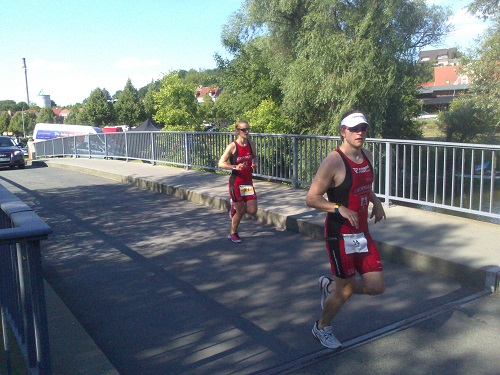 Beim anschließenden Bad in der Havel hadere ich mit mir. Ob es ein Fehler war, überhaupt an den Start zu gehen? Ob ich das Team in 2 Wochen in Berlin wieder würdiger vertreten kann? Dann sehe ich von weitem, wie Grahlo in unverkennbarer Eleganz und einen Kampf gegen sich und die Welt führend über die kleine Havelbrücke auf die Laufstrecke rennt. Das hier und jetzt zählt, denke ich und feuere wenigsten noch ihn und Jörg, Andi, Carsten, Antje, Jule, Mara, Tina, Holm, Heiko und die beiden Herrmanns auf ihrem Weg ins Ziel an.