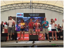 4 Laufrunden am Main in der brütenden Hitze, keine Wolke am Himmel. Ich lief von Verpflegungsstand zu Verpflegungstand immer mit demselben Ablauf: Kopf kühlen mit Wasser, trinken Wasser, Cola, Eiswürfel in die Kleidung gesteckt, nochmal Wasser über den Kopf und weiter. Anfang der 2. Laufrunde bin ich dann auf den 2. Platz vorgelaufen. Die Dehydrierung machte sich sichtbar durch dicke weiße Wurstfinger, also entschied ich mich für ein paar Schübe Salz an den nächsten Verpflegungsstellen. In Runde 2 und 3 musste ich leider jeweils das gleiche Dixie-Örtchen besuchen. *Fluch* Ich habe trotz des miesen Gefühls nie gezweifelt, dass ich es nicht schaffe. Der Zieleinlauf war einfach nur emotional und unbeschreiblich toll. Unfassbar! Vizeeuropameisterin der AK, Hawaii-Slot! Völlig überwältigt.