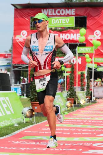 Ja. Ja. Da hatte der Vortag dann doch Spuren hinterlassen…Sepp sollte lieber Schatten aufsuchen. Bei Kilometer 30 Richtung zweiter Wende gab es dann noch mal gut Motivation durch mitgereiste Freunde aus Leipzig und hier zeigte sich, dass Sepp doch nicht geflunkert hatte. Leder, Niedrig und Jacobs waren keinen Kilometer weit weg. Wenn das nicht beflügelt. In klassischem Langstrecken-Schleppschritt konnte ich noch am ehemaligen Weltmeister vorbeischlurfen, bevor es durch Roth und hier Richtung Ziel ging. Überglücklich, meine zweite Langdistanz im Ziel beendet zu haben, ging es als 59. in 9:25 h durch das mit jubelnden Zuschauern gefüllte Stadion.