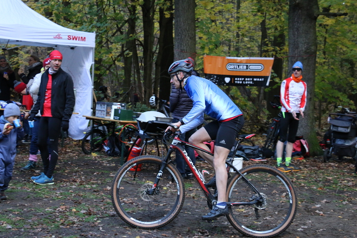 Der 2XDuathlon wird in 2-er Teams bestritten: jedes Teammitglied rennt dabei 2 x 1km und fährt 5km durch den Wald. Da meine Bikehandlingskills ja berühmt berüchtigt sind (leider nicht im positiven Sinne), haben die Eschlers, Peter, Raketenchristian, Max und noch einige andere die Strecke mit mir abgefahren. Die Ausschilderung der Lauf- und Radstrecken war gut, einmal abfahren reicht und man findet den Weg.
